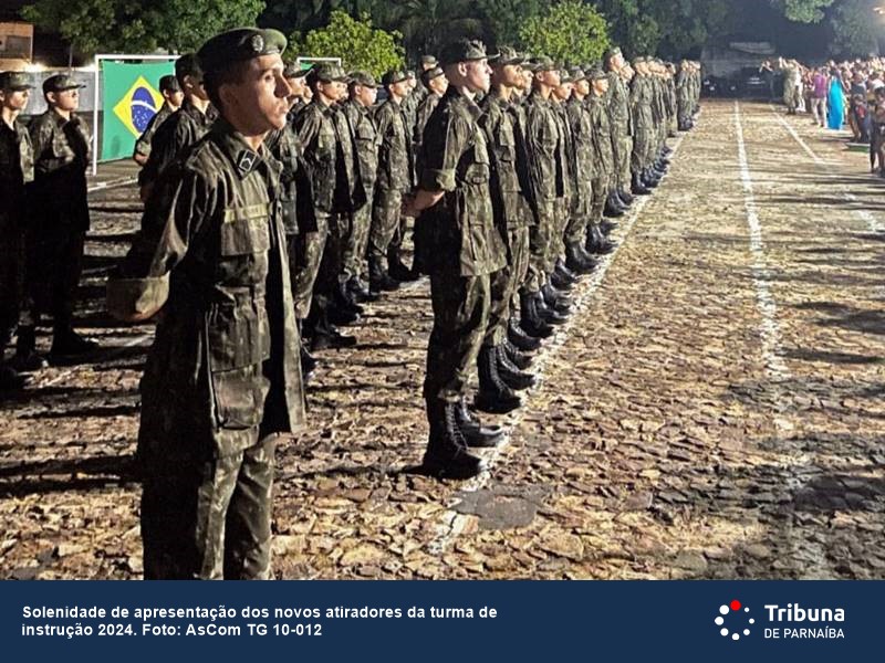 Nesta sexta-feira, 15 de março, o Tiro de Guerra 10-012 realizou a solenidade de apresentação dos novos atiradores da turma de instrução 2024. Localizado na cidade de Parnaíba, o Tiro de Guerra é uma instituição importante para a formação de jovens no Exército Brasileiro. Continua depois da publicidade