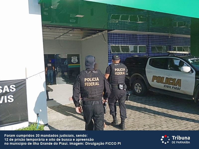 A ação policial deu cumprimento a 20 mandados judiciais, sendo 12 de prisão temporária e oito de busca e apreensão no município de Ilha Grande do Piauí.