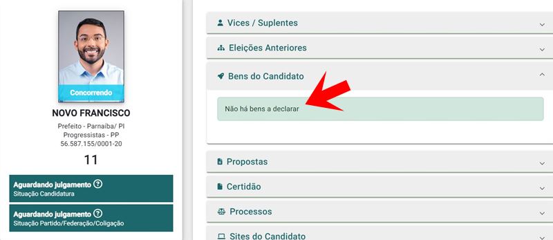 - Novo Francisco: Não há bens a declarar
