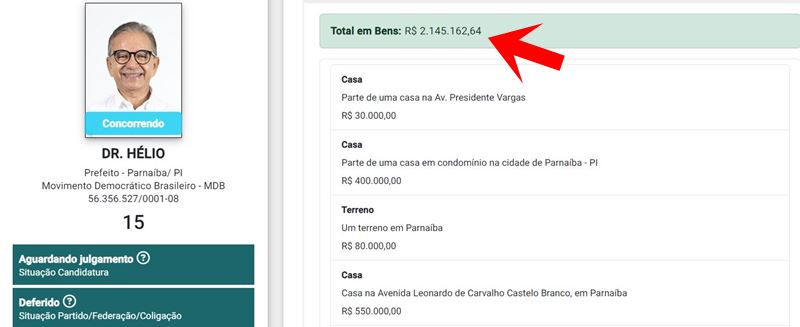 Confira as declarações de bens dos candidatos a prefeito de Parnaíba informada ao TSE: