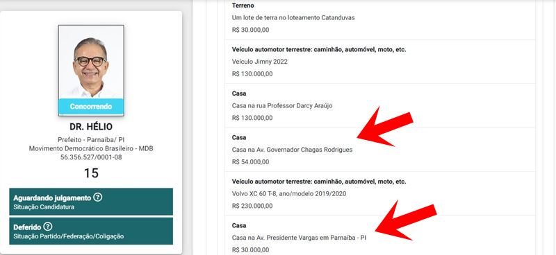 Agora um candidato, que há 12 anos é deputado estadual, empresário, médico e declarar uma casa na av. Governador Chagas Rodrigues, uma das principais avenidas de Parnaíba no valor de R$ 54 mil, e outra na av. Presidente Vargas, no valor de R$ 30 mil, também uma das mais tradicionais avenidas da cidade litorânea, é no mínimo, debochar da justiça eleitoral e dos eleitores parnaibanos. Será se o candidato as venderia por esses valores?