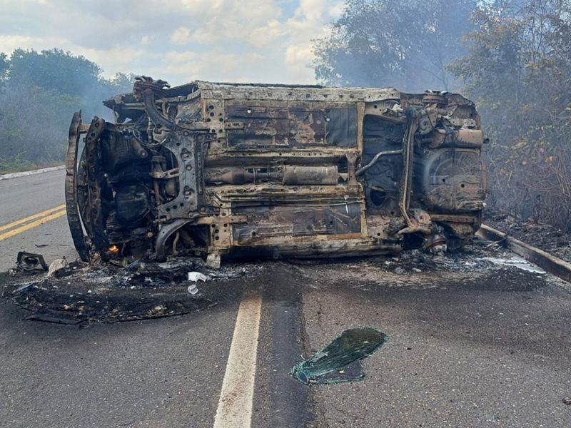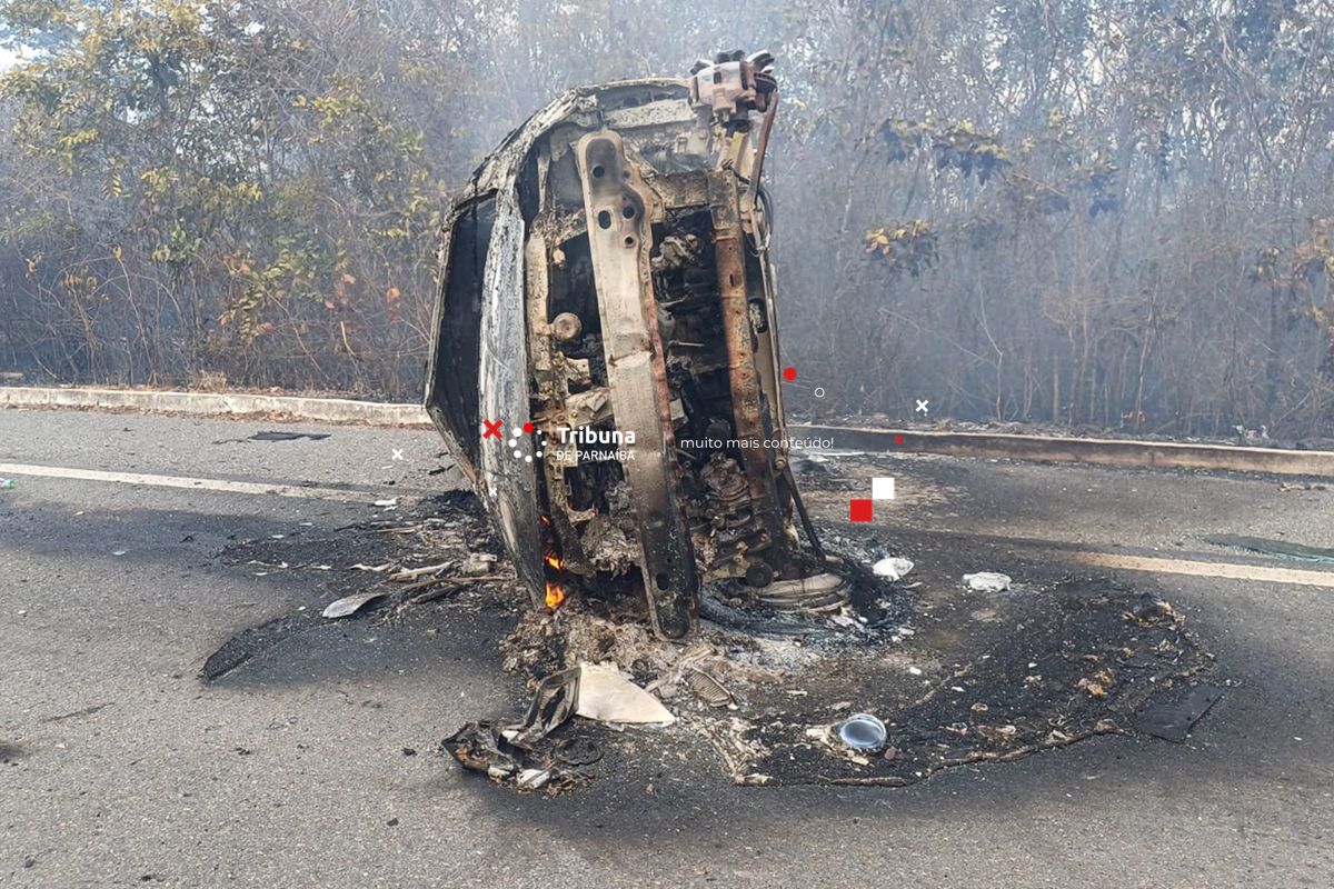 O sinistro envolveu um veículo Nissan Livina, que capotou após o estouro de um dos pneus e, em seguida, foi consumido pelo fogo.