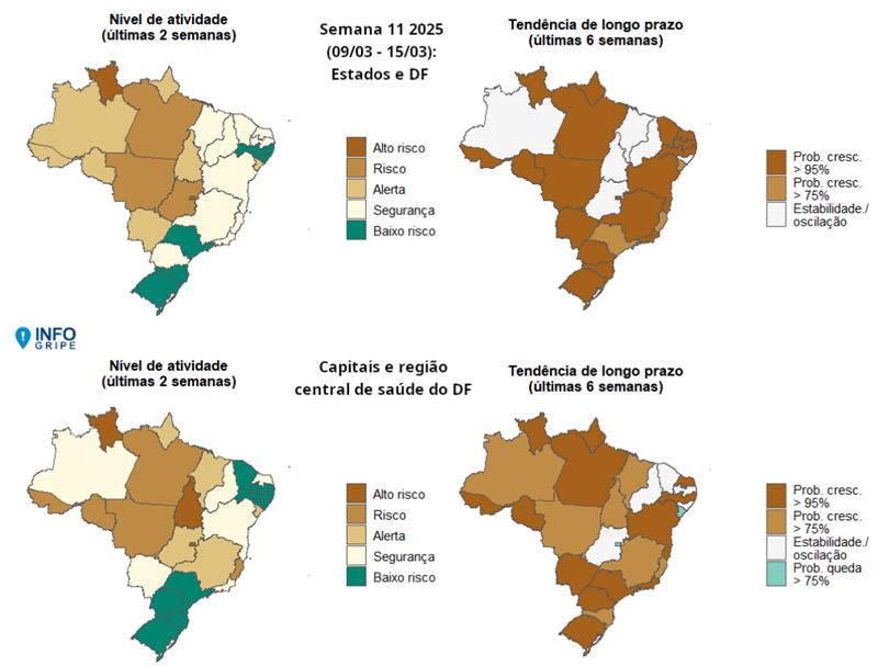 📊 O InfoGripe também indica tendência de crescimento da SRAG no longo prazo, até a Semana Epidemiológica (SE) 11 (9 a 15 de março).