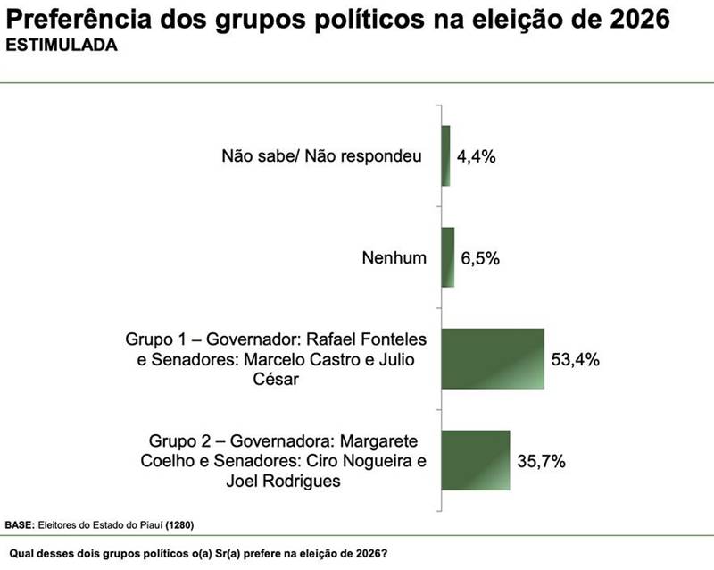 Questionado “qual desses dois grupos políticos o(a) sr(a) prefere na eleição de 2026”, o resultado aponta para uma bela disputa ⚔️: