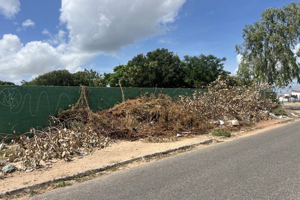 📍 O cenário é de abandono: lixo doméstico, galhos e até animais mortos cercam duas das maiores escolas públicas de educação infantil de Parnaíba.
