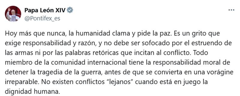 “Hoje, mais do que nunca, a humanidade clama por paz. Este é um clamor que exige responsabilidade e razão, e não deve ser abafado pelo estrondo das armas”, escreveu o Papa em seu perfil oficial na rede X (antigo Twitter) 📲.