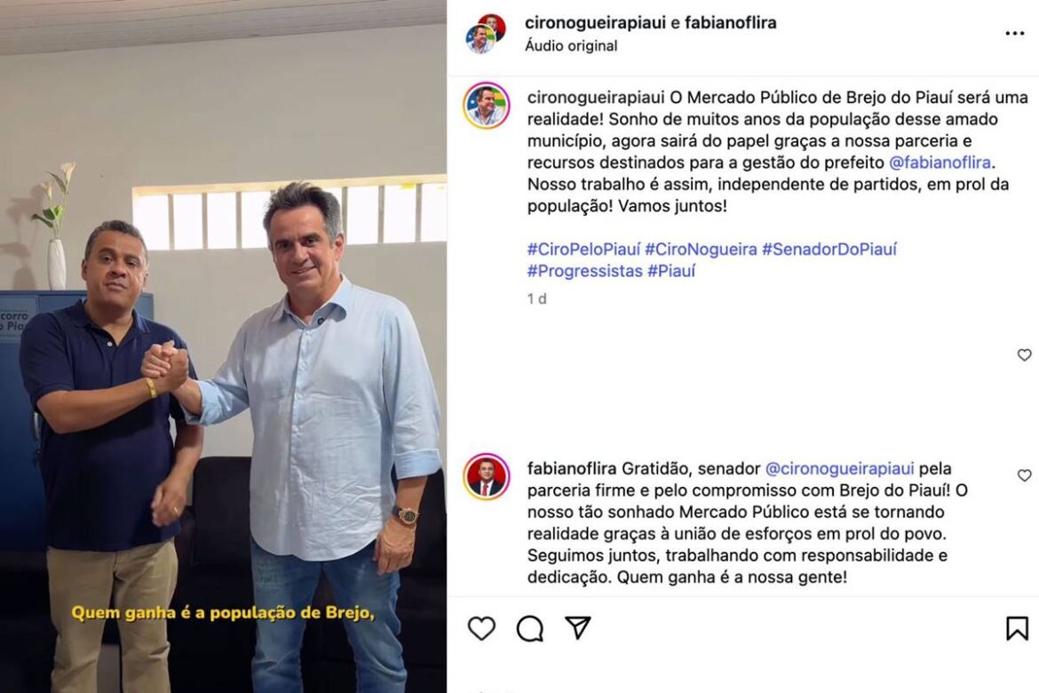 O senador Ciro Nogueira (Progressistas) e o prefeito de Brejo do Piauí Fabiano Lira (PT) anunciaram, através de suas redes sociais, com uma postagem do tipo “colab”, uma sonhada obra para a população.