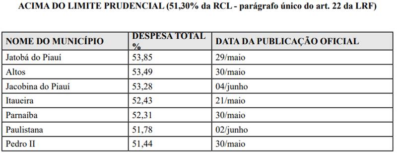 📉 O alerta do TCE foi claro e direto: a Prefeitura de Parnaíba ultrapassou o limite prudencial de 51,30% da Receita Corrente Líquida (RCL) com gastos de pessoal, atingindo 52,30%, o que configura infração à Lei de Responsabilidade Fiscal (LRF).