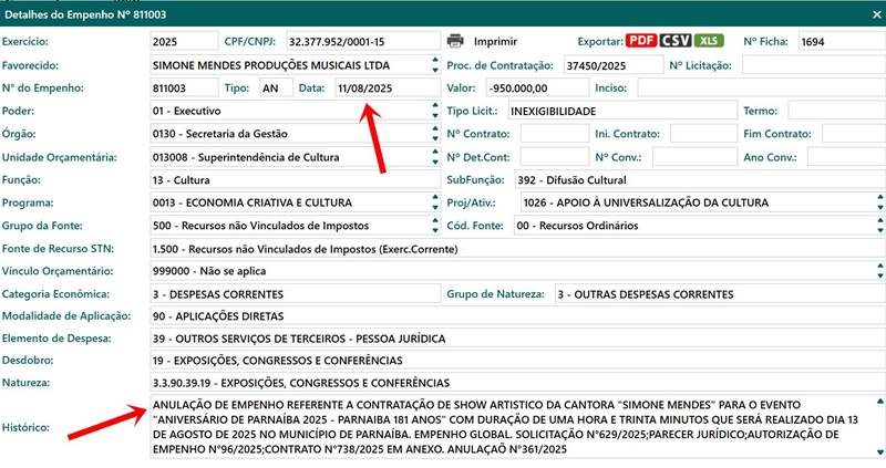Nesta segunda-feira (18), ao consultar o Portal da Transparência do município, nos deparamos com a anulação do empenho nº 806002, no valor de R$ 950 mil. Até aí, seria apenas uma suposta tentativa de corrigir a polêmica do duplo pagamento, governo e prefeitura.