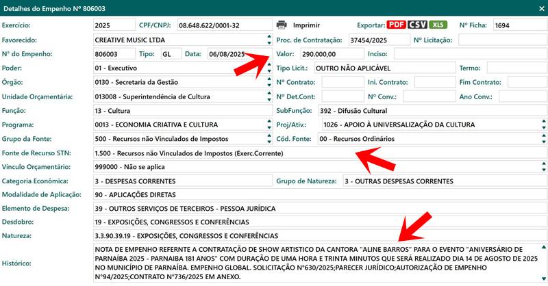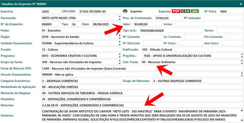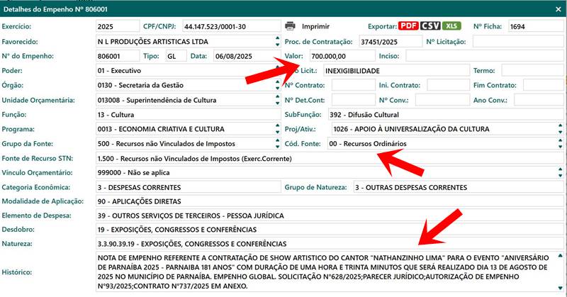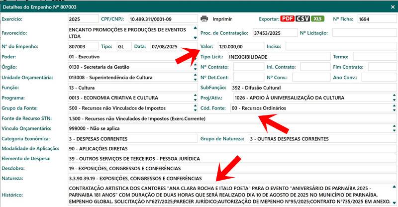 ⚠️ ATENÇÃO: Se, no improvável cenário, a prefeitura de Parnaíba tiver recebido recursos de emendas para os shows e, tenha registrado as despesas como pagas pela fonte contábil de recursos próprios do município, isso poderia configurar uma possível PEDALADA FISCAL GRAVE, supostamente deliberada e passível de investigação imediata pelos órgãos de controle. |