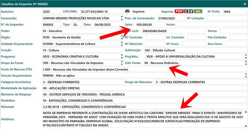 O Portal da Transparência, da própria Prefeitura de Parnaíba, derruba a farsa: o cachê de Simone Mendes (R$ 950 mil), o de Nathanzinho Lima (R$ 700 mil), Aline Barros (R$ 290 mil), Ana Clara e Ítalo Poeta (R$ 120 mil), Seu Matruz (R$ 90 mil) TODOS foram pagos integralmente com recursos municipais.