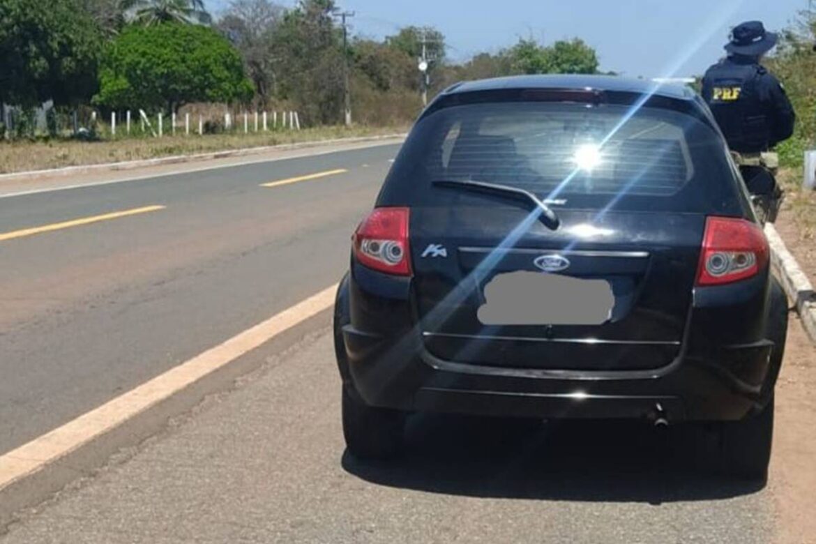 O automóvel, um Ford Ka Flex, pertence a uma empresa de locação de veículos e estava com um boletim de ocorrência ativo desde julho deste ano em Jundiaí/SP.
