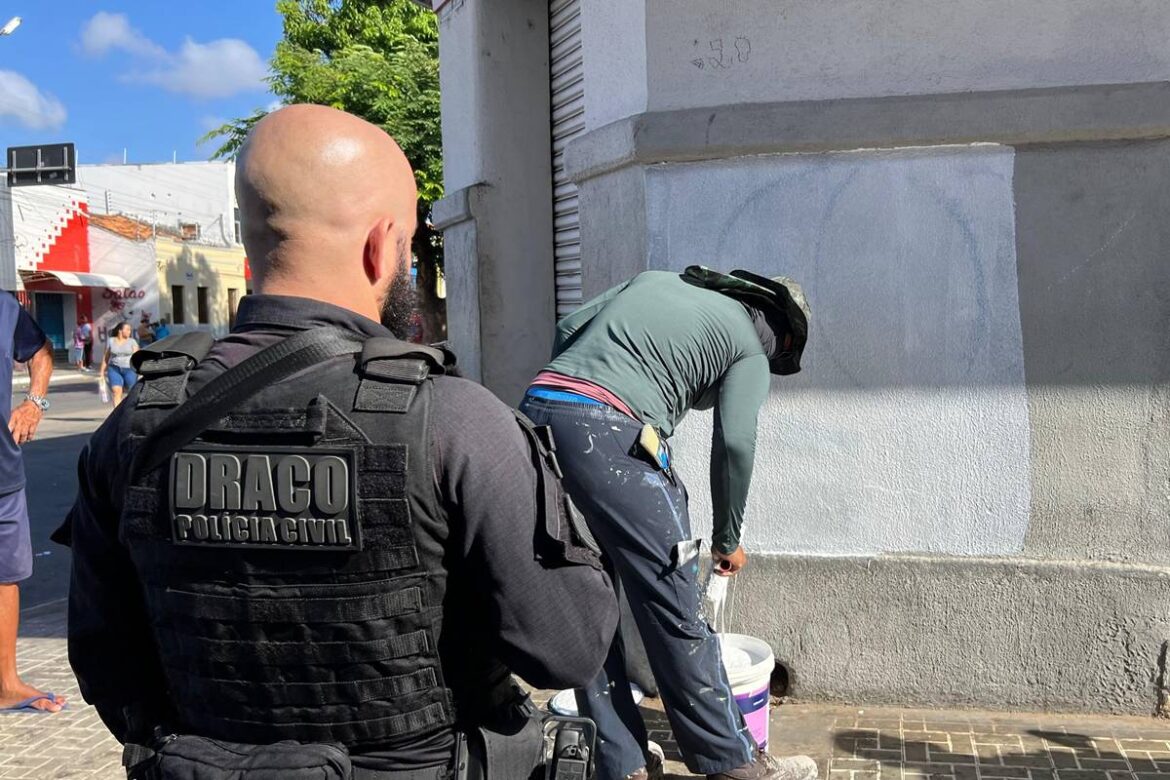Forças de segurança removeram no centro de Parnaíba marcas usadas por criminosos para intimidar população.