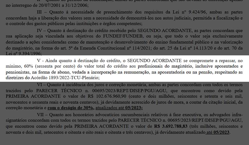 De acordo com o vereador, o Município de Parnaíba firmou um acordo judicial com a União Federal comprometendo-se a destinar no mínimo 60% do valor total do crédito do FUNDEF aos profissionais do magistério.