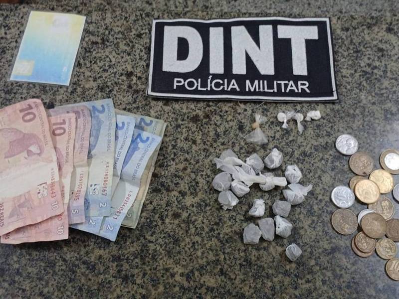 Serviço de Inteligência flagra jovem com 20 porções de drogas e dinheiro trocado em ponto de venda. Suspeito já tinha passagem pela polícia e foi capturado em operação estratégica da PM.