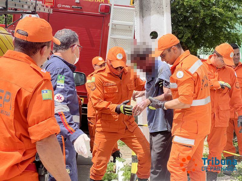 🚒 Uma guarnição do Corpo de Bombeiros realizou o resgate com apoio de uma Unidade Avançada do SAMU.