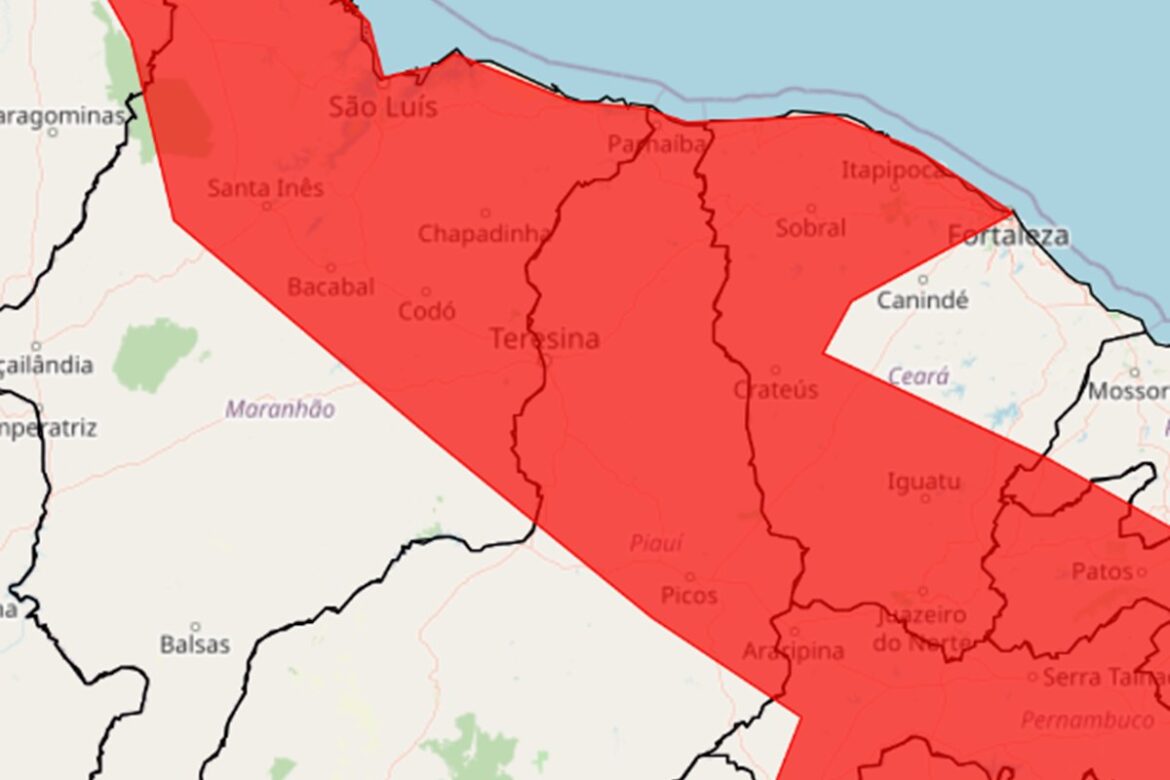 O aviso de Grande Perigo foi emitido pelo Instituto Nacional de Meteorologia (INMET) e vale para todo o meio-norte do estado, incluindo Teresina, Parnaíba e demais municípios do litoral do Piauí.