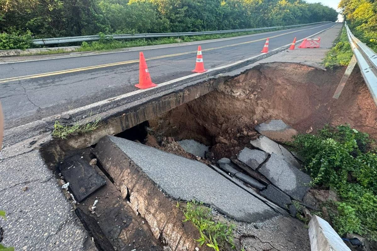 A cratera surgiu no acostamento e pode avançar para a pista principal, colocando em risco motoristas e passageiros. A interdição é preventiva para evitar acidentes graves.