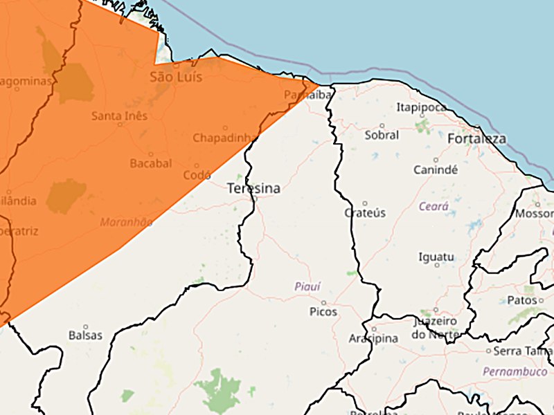 A cidade de Parnaíba está sob alerta laranja (perigo) para chuvas intensas, segundo o Instituto Nacional de Meteorologia. O aviso já está em vigor e exige atenção redobrada da população.