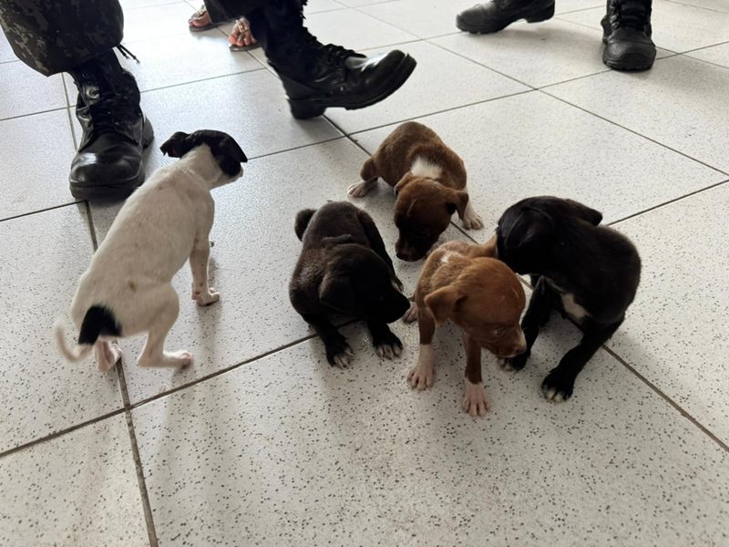 Dentro da casa, completamente vazia, os policiais encontraram os filhotes em condições de abandono. A mãe dos animais também estava no imóvel, mas fugiu antes de ser capturada. A expectativa é que ela seja localizada em breve para receber os cuidados necessários.